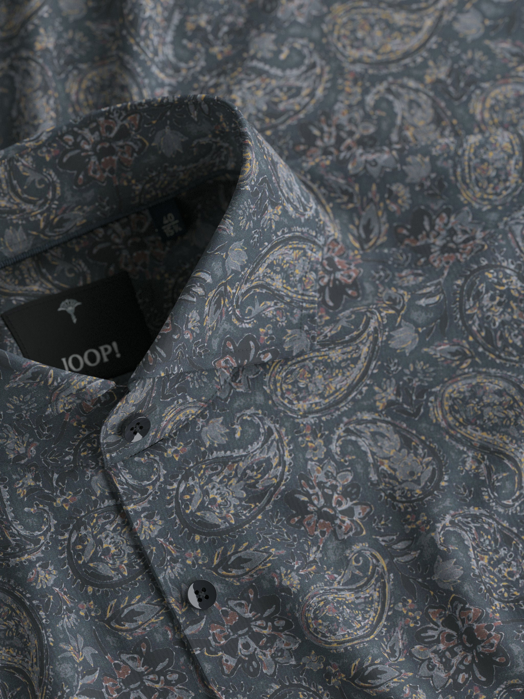 Refined dark blue patterned cotton shirt by JOOP! in a contemporary slim fit. Perfect for winter layering or standalone wear, this piece combines premium fabric quality with subtle design details. An essential addition for the man who values both style and substance.