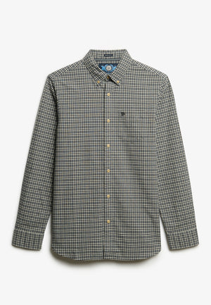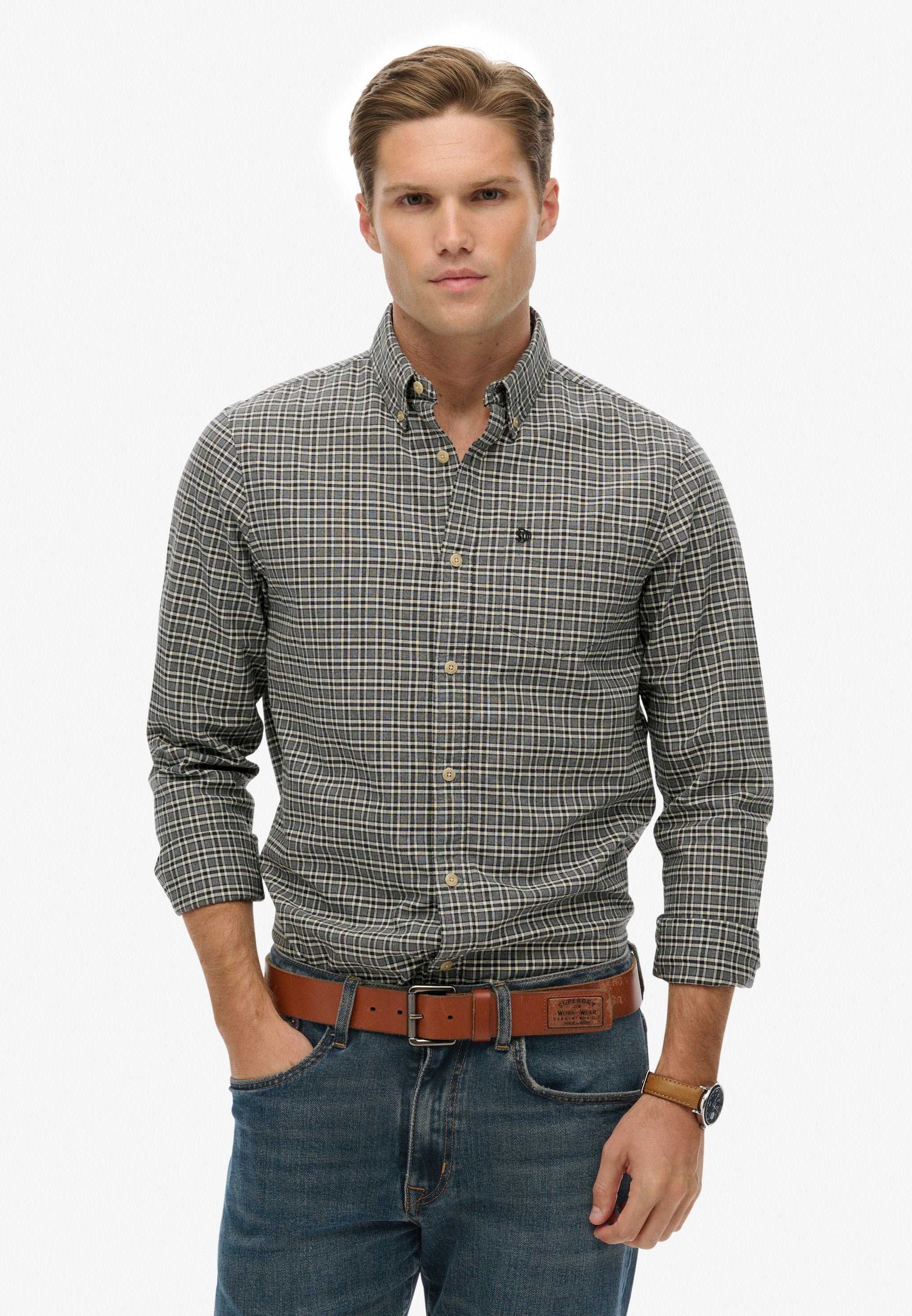 Button fastening, Button-down collar, Chest pocket, Button fastened cuffs, Embroidered Superdry logo on chest pocket.