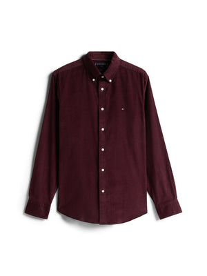 Long Sleeve Regular Fit Flag Embroidery Corduroy Shirt Deep Burgundy