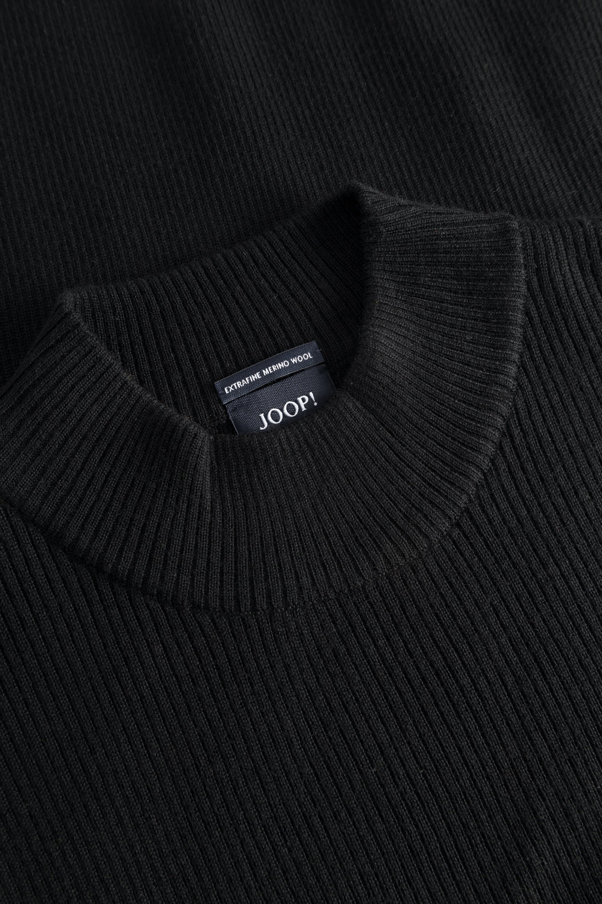 Luxurious black knit sweater by JOOP! crafted from 100% virgin wool for unparalleled softness and warmth. The timeless silhouette and premium material create an effortlessly elegant piece that anchors any sophisticated wardrobe. Investment-worthy quality for the discerning gentleman.