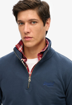 Our Essential Logo Half Zip Sweatshirt is the perfect piece to round off your staples. Combining the smart sophistication of a half zip collar with the open comfort of a sweatshirt design, this soft college piece is the ideal choice to accompany your authentic style. Nostalgically embroidered, this comfortable sweatshirt would look great with jeans and trainers for an effortless casual look and is versatile enough for any occasion.