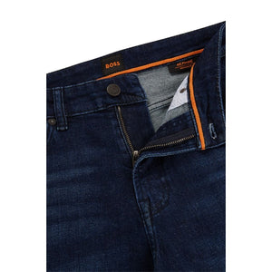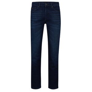 Regular-fit jeans cut with a tapered leg in dark-blue comfort-stretch denim featuring subtle used effects by BOSS Menswear.