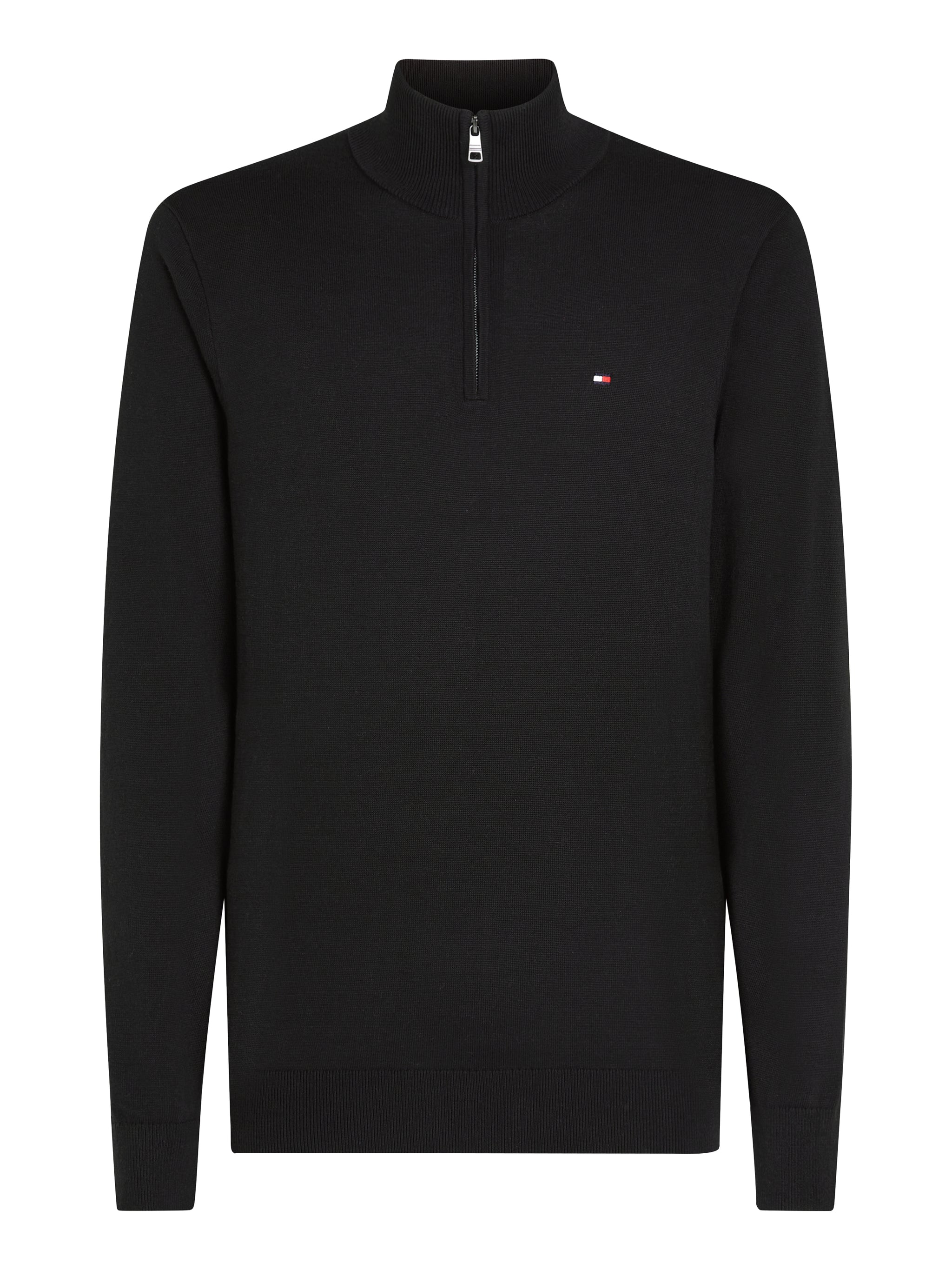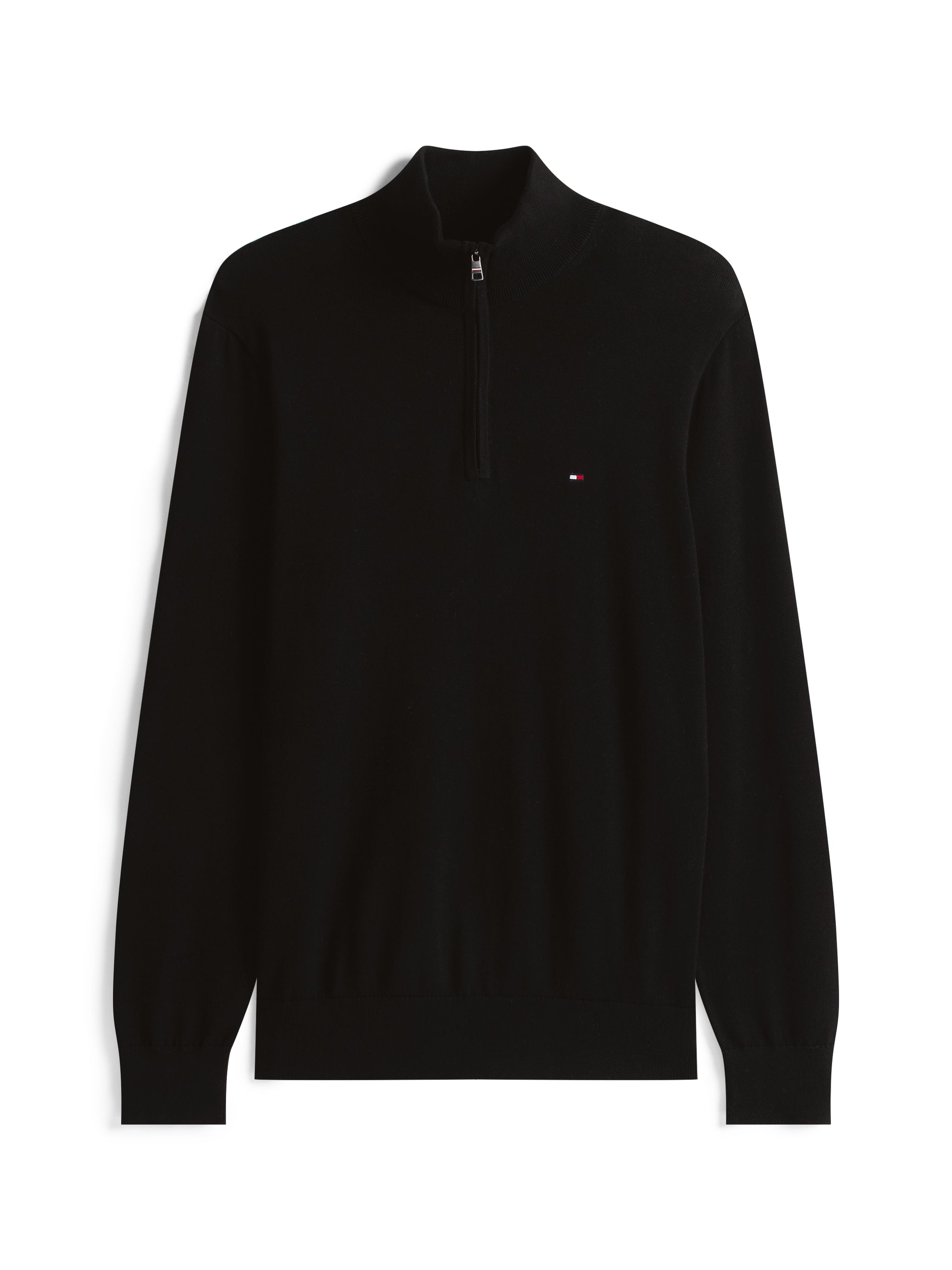 This effortlessly stylish and subtly sporty jumper has a mock neck for a sophisticated look and modern quarter-zip design.