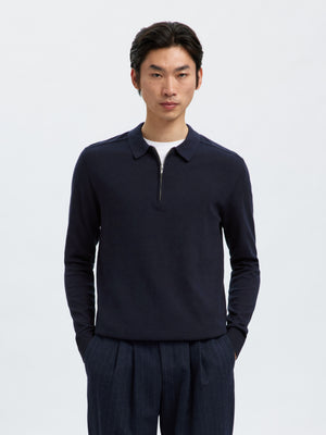 Elevate your everyday rotation with this refined knitted polo sweater from Selected Homme. Crafted in rich navy, the half-zip design offers effortless layering versatility while the premium knit construction ensures lasting comfort. A sophisticated staple that transitions seamlessly from casual weekends to smart-casual occasions, delivering understated elegance season after season.