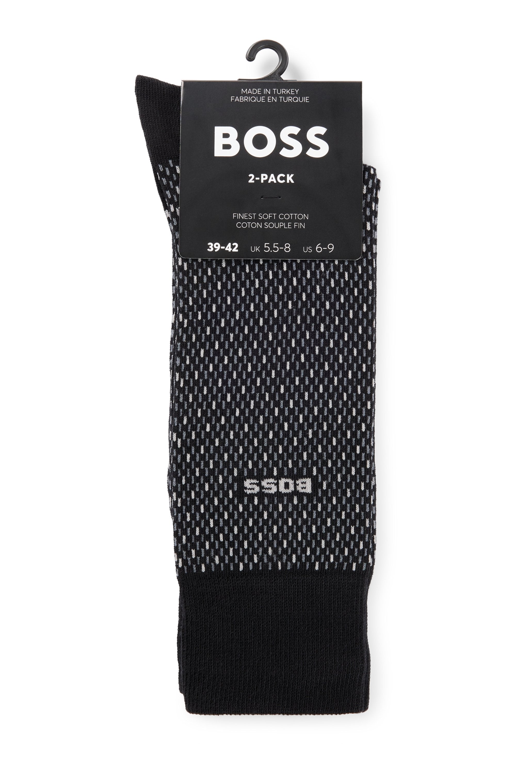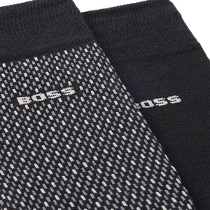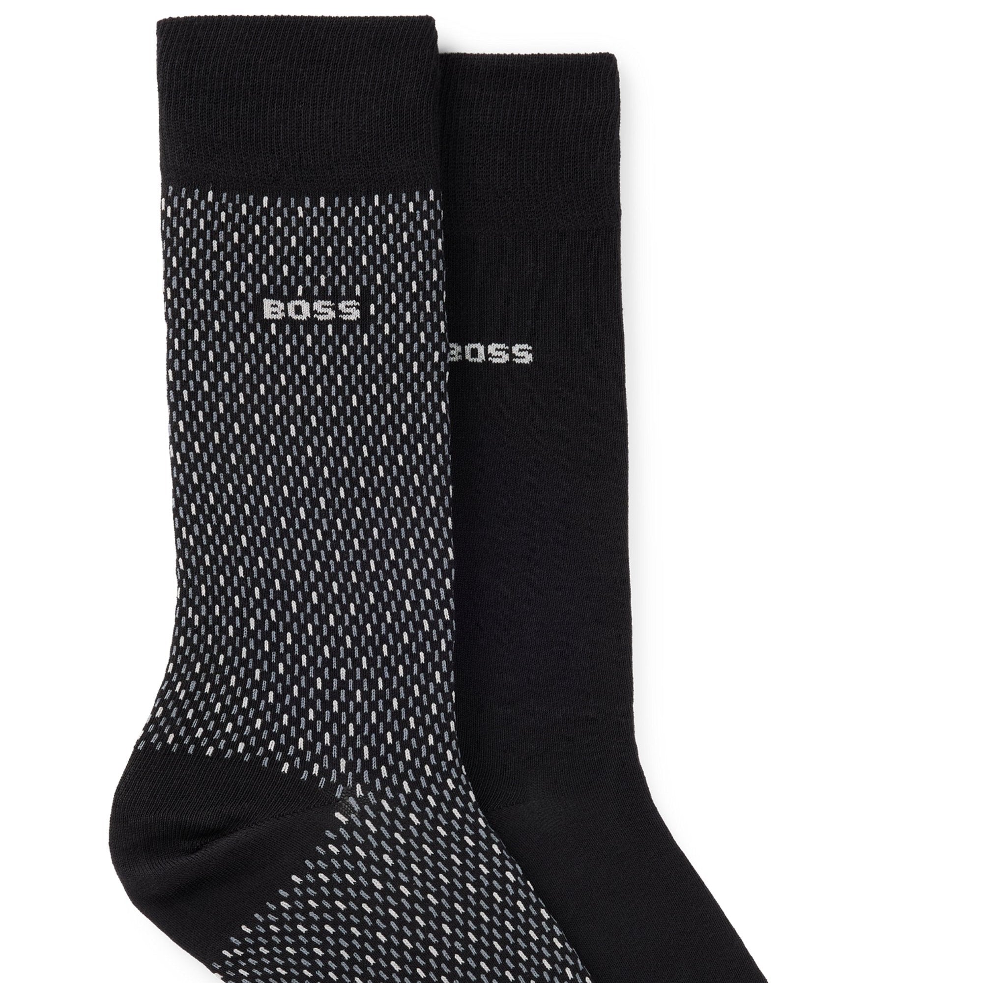 A duo of patterned and plain socks by BOSS. Featuring a logo detail, each regular-length pair is crafted in a stretch blend with cotton.