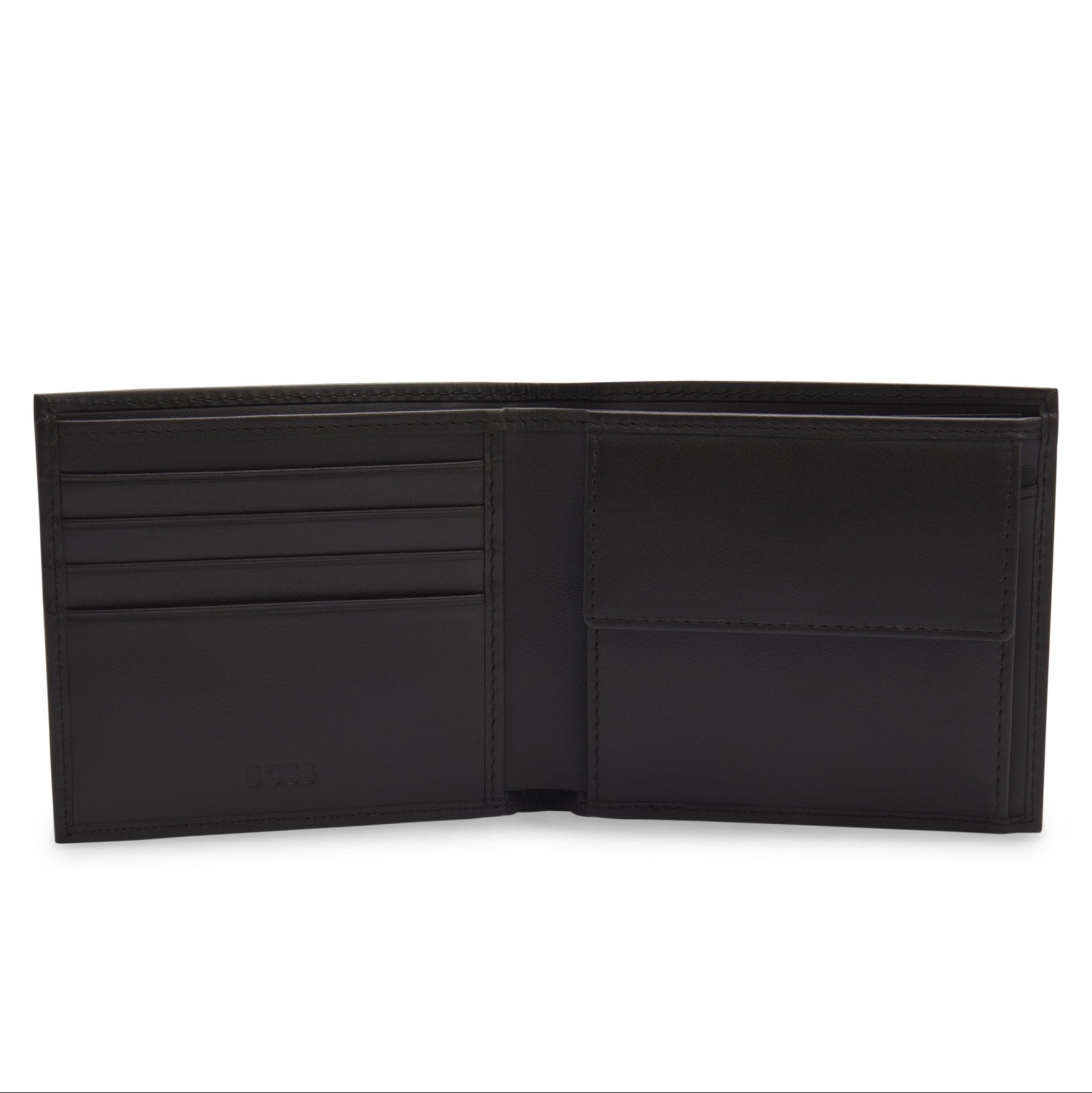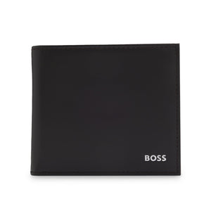 A refined folding wallet from BOSS Menswear, crafted in smooth leather with a coin pocket. Detailed with a silver-tone printed logo. Measurements: 11 x 9.5cm This product contains at least 80% better raw materials. The leather used to make this product has been sourced from certified tanneries.